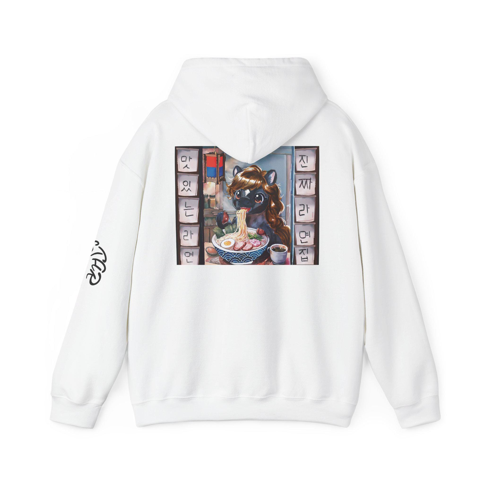 Ramen Pony Illustration Hoodie | Korean Noodle Shop Back Print