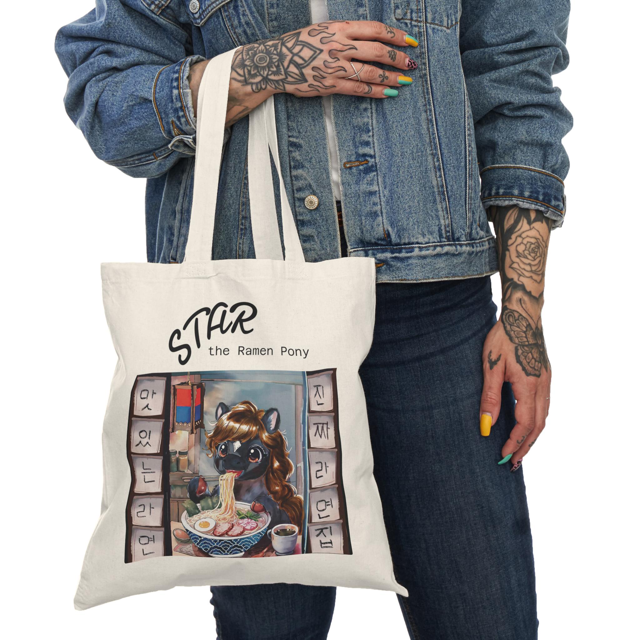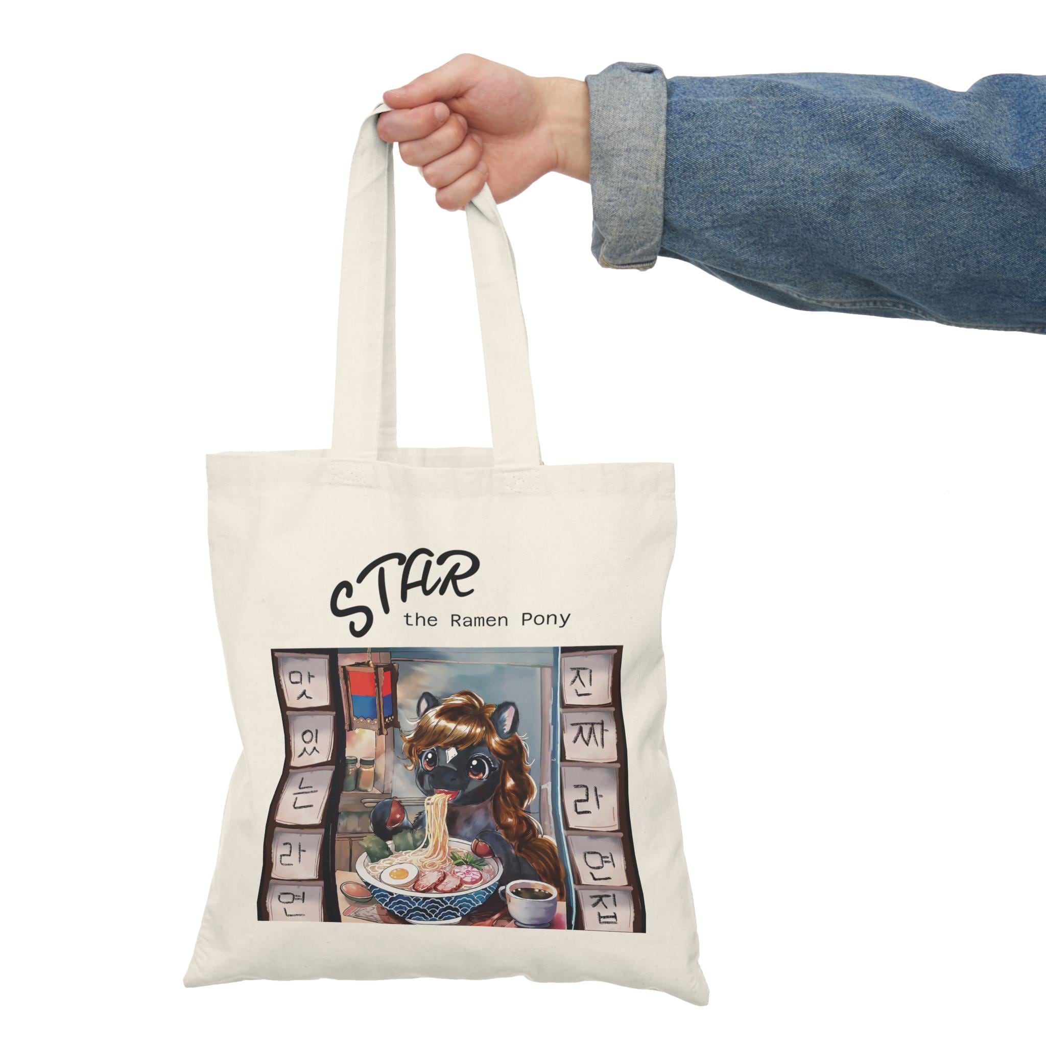 Ramen Pony Illustration Tote Bag | Natural Cotton Canvas Noodle Art Bag